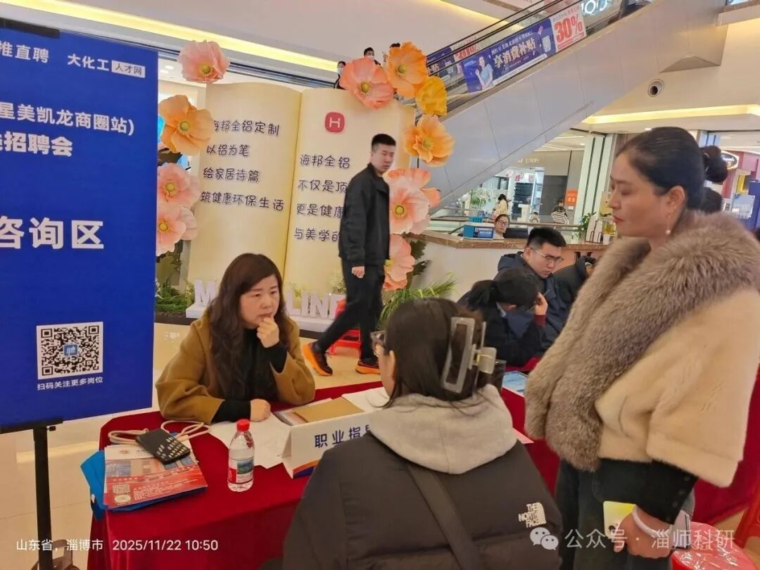 应淄博市人社局人才服务中心邀请,我院教师于淑君11月22日上午参加由淄博市人力资源和社会保障局主办,淄博市公共就业和人才服务中心、张店区人力资源和社会保障局、经开区人力资源和社会保障局承办的“就在淄博”红星美凯龙商圈站大型招聘活动,担任现场职业指导专家。