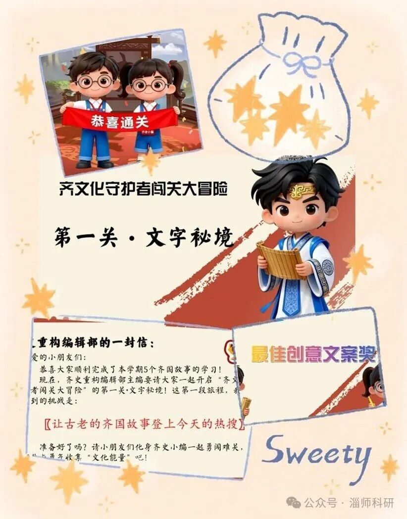为实现“深化故事内涵、活化传统文化”的双目标导向,志愿服务队依托项目式学习理念,创设了“齐史编辑部”沉浸式教学情境。通过“总编”引导回顾与“小编”闯关探究的双重角色扮演,有效赋能学生,使其在趣味任务中深化对《邹忌讽齐王纳谏》等经典的理解。