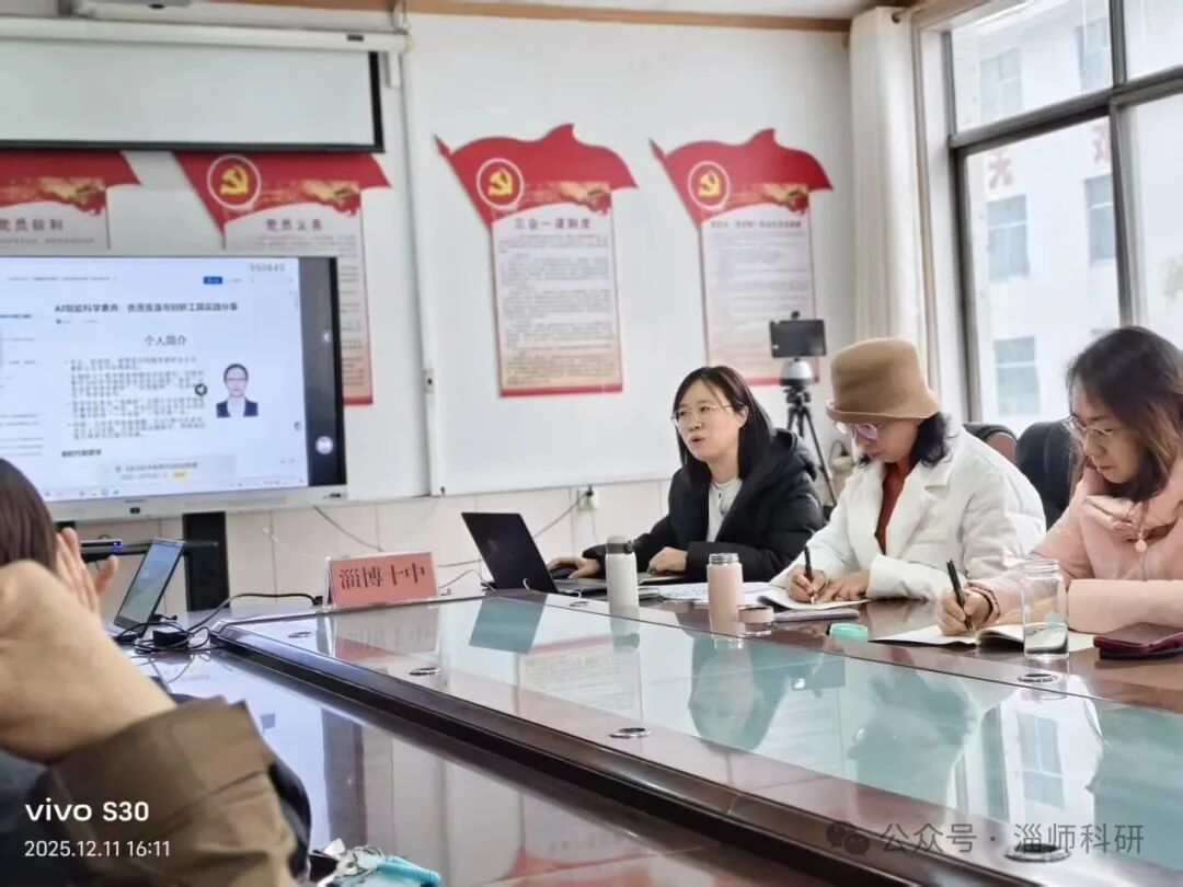 2025年12月11日下午,淄博师范高等专科学校数学教学名师工作室负责人段素芬带领团队成员石红芳、辛乐老师一行,前往淄博第十中学开展教学交流活动。此次活动以“AI赋能教育转型”为主题,通过听课研讨、专题报告等形式,共同探讨信息化背景下教学创新与教师发展的新路径。