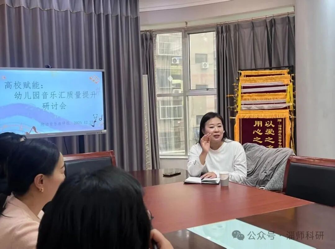 为深入贯彻《3-6岁儿童学习与发展指南》精神,落实“幼有善育”的时代要求,充分发挥高校学前教育专业引领与服务职能,2025年12月23日,学前教育学院王娟老师应邀走进淄博师专附属幼儿园,以“音乐教育活动质量提升”为主题,开展专项教研指导活动,为附幼趣味化、游戏化音乐会打造注入专业力量,推动“院园融合”走深走实。