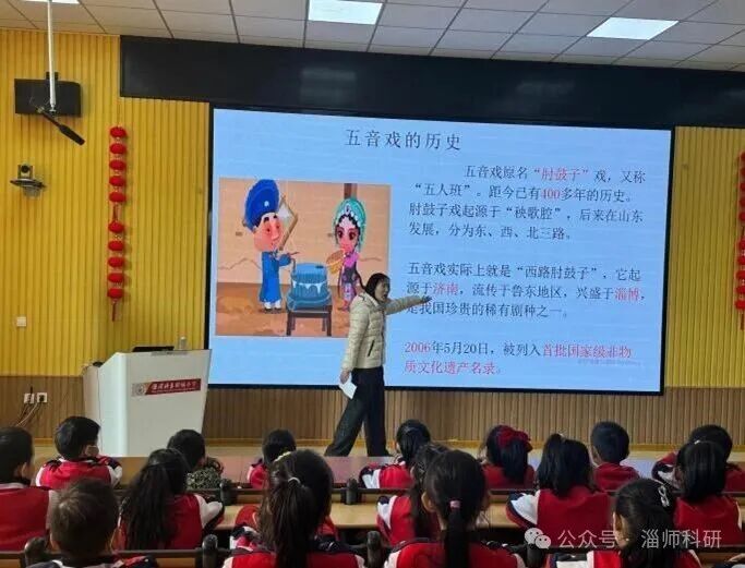 为弘扬中华优秀传统文化,推动国家级非物质文化遗产“五音戏”在青少年中的发展与传承,2026年1月7日,由淄博师专“小梅花”戏曲社团与人文学院五音戏文化传承与应用研究中心联合举办的“五音雅韵润童心 戏曲文化共传承”系列活动第三站在淄博师专附属小学精彩上演。