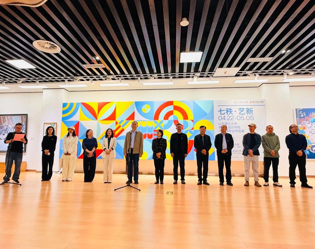 4月22日,山东理工大学美术与设计学院以“七秩·艺新”为主题的2026届毕业作品展在淄博市文化馆展厅顺利开展,学校范真教授应邀出席此次毕业创作展,并参与同期举办的学术交流活动,与来自各界的艺术教育同仁、师生代表共赏艺术成果、共探学科发展。